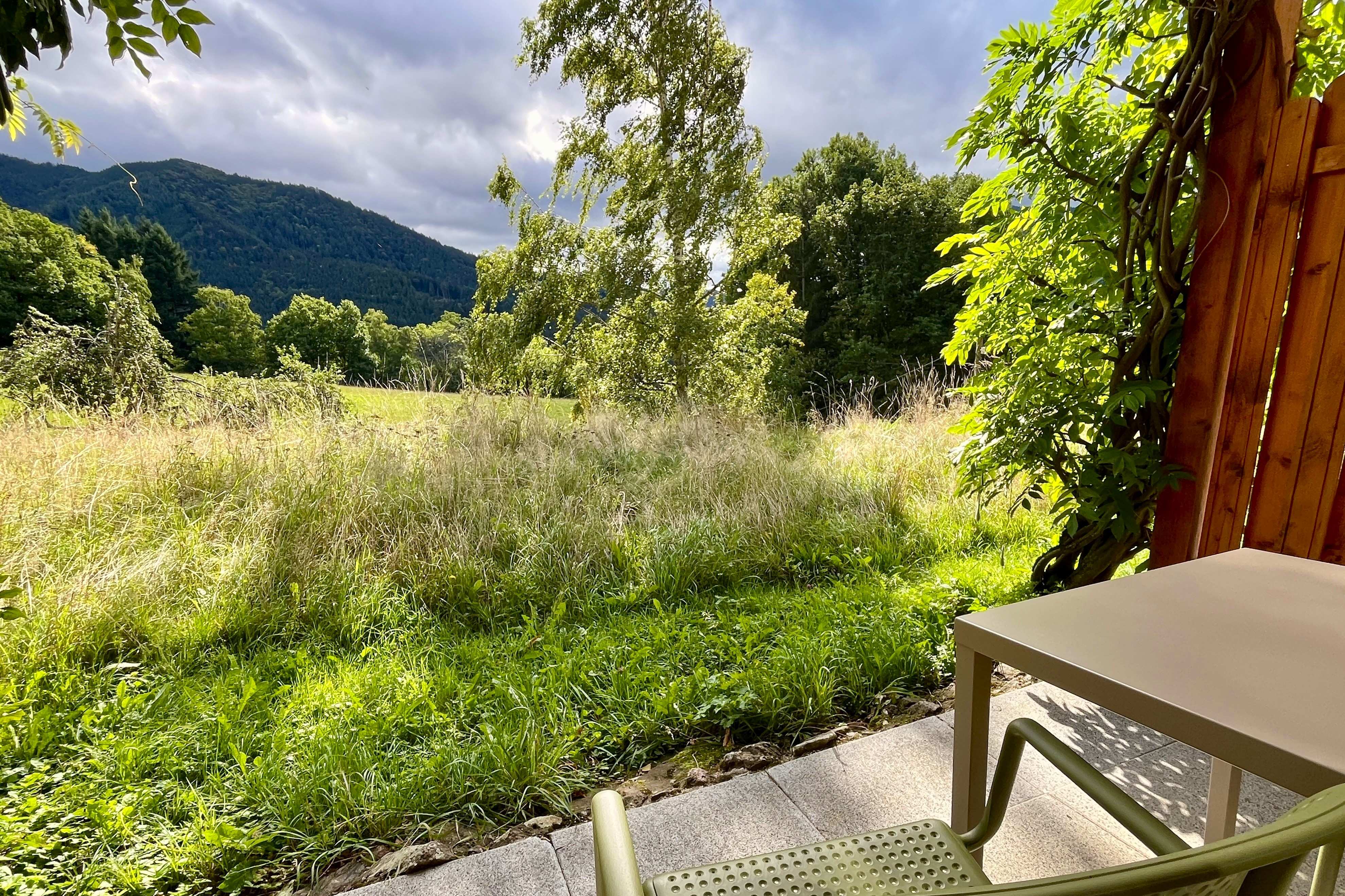 Im Anbau befinden sich sechs geräumige Zimmer mit jeweils 27 m² (einschließlich Badezimmer). Drei dieser Zimmer verfügen über einen Balkon, während die anderen drei eine Terrasse mit direktem Zugang zum Garten haben. Alle Zimmer bieten einen herrlichen Blick ins Tal und sind nach den Prinzipien des Feng Shui eingerichtet.